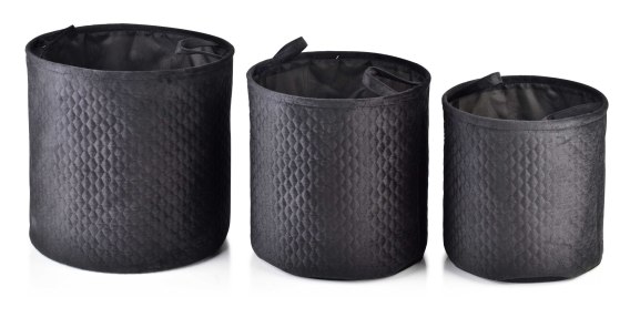 Komplet 3 Okrągłych Koszy Tekstylnych SARA BLACK – Pikowane Organizery, Zestaw L/M/S
