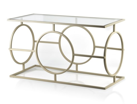 Stolik z serii Cedric marki Mondex to propozycja dla osób, które szukają w meblach unikalności i nowoczesnego charakteru. Jego konstrukcja opiera się na rytmicznym motywie kół, wykonanych z metalu w kolorze subtelnego złota, które podtrzymują elegancką taflę szklanego blatu. To idealny wybór do wnętrz w stylu Modern Classic, Glamour oraz nowoczesnych loftów, gdzie liczy się gra formą i światłem.