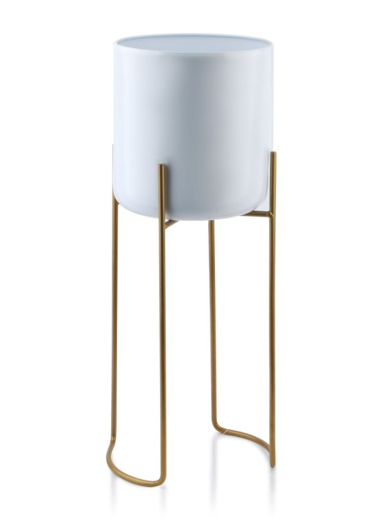 Nowoczesny Kwietnik Metalowy SWEN 54 cm – Biała Osłonka na Złotym Stojaku