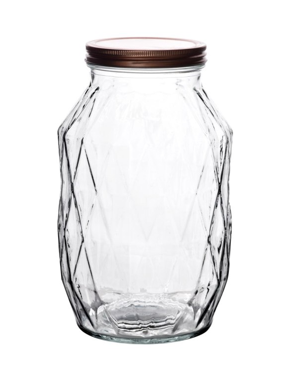 Szklany słój z serii BASIC KITCHEN marki ALLESKEN to połączenie wyrafinowanego designu z imponującą pojemnością. Wykonany z wysokiej jakości szkła sodowego, zachwyca precyzyjnym tłoczeniem w diamentowy wzór, który pięknie załamuje światło i dodaje blasku każdej kuchni czy spiżarni. To idealne naczynie dla osób, które chcą przechowywać żywność w sposób higieniczny, a jednocześnie niezwykle estetyczny.